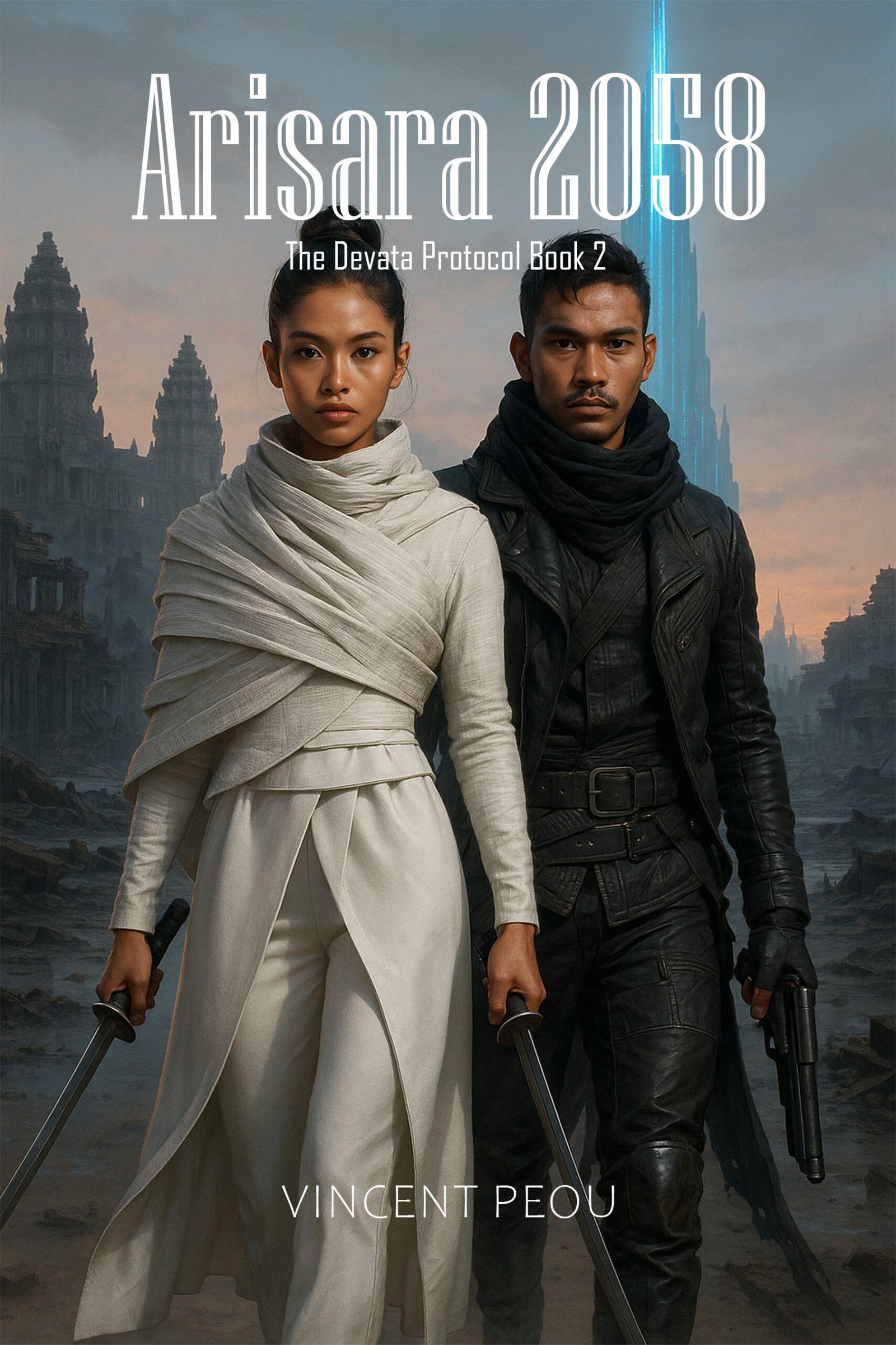Arisara 2058 is a dystopian sci-fi thriller set in a future Phnom Penh ruled by Devata—an all-seeing AI that promises perfection while dividing the “Designed” from the “Naturals.” The story follows Kai, a Natural farm boy drawn into the city’s underground and a shadow war involving the mythic Garuda, as he confronts surveillance, black-market upgrades, and a regime that trades freedom for certainty. It’s part coming-of-age, part political conspiracy—about family, choice, and what it means to stay human when technology decides who gets to be “real.”